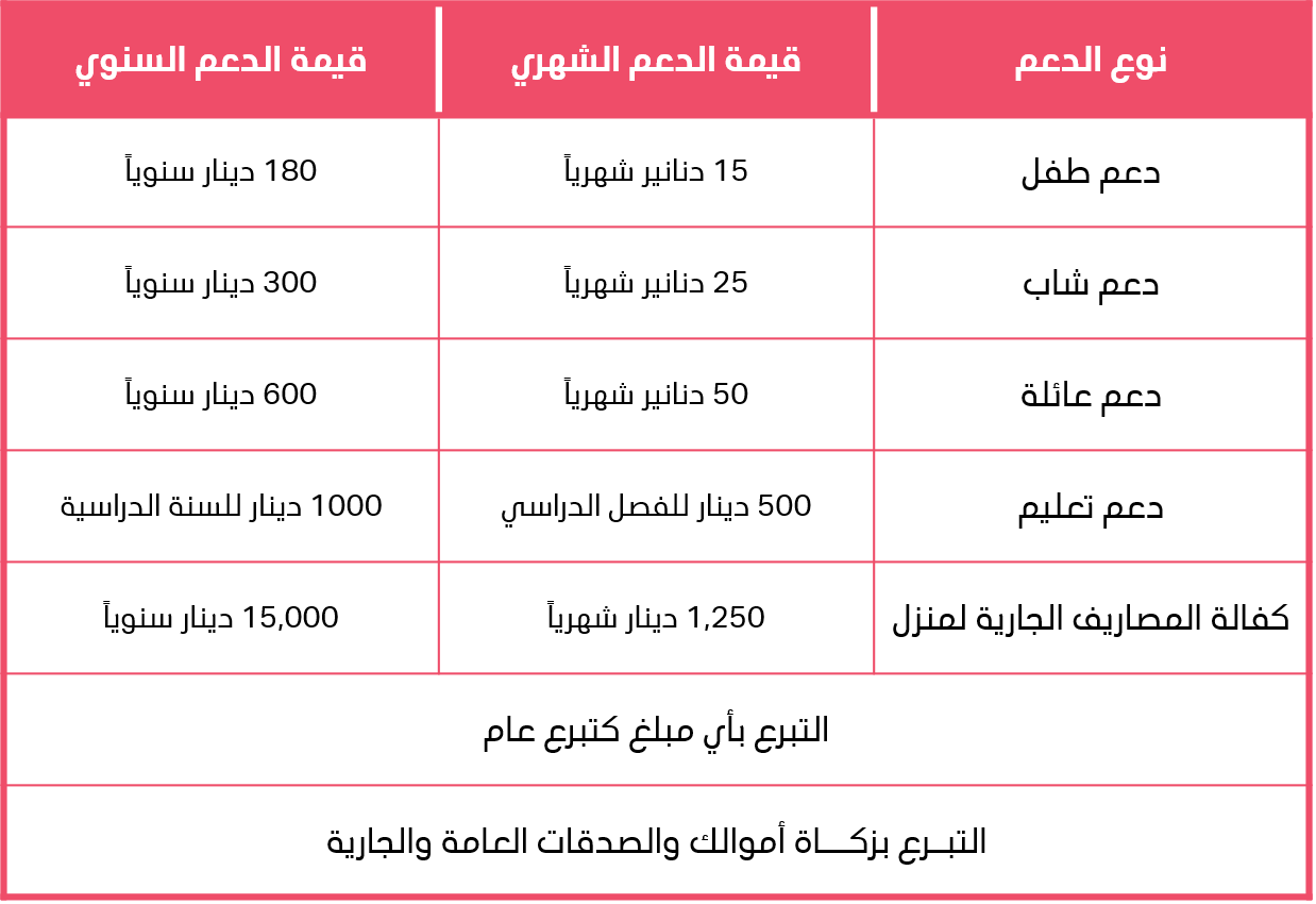 - جميع التبرعات معفاة من الضريبة بناء على كتاب رسمي من دائرة ضريبة الدخل والمبيعات.